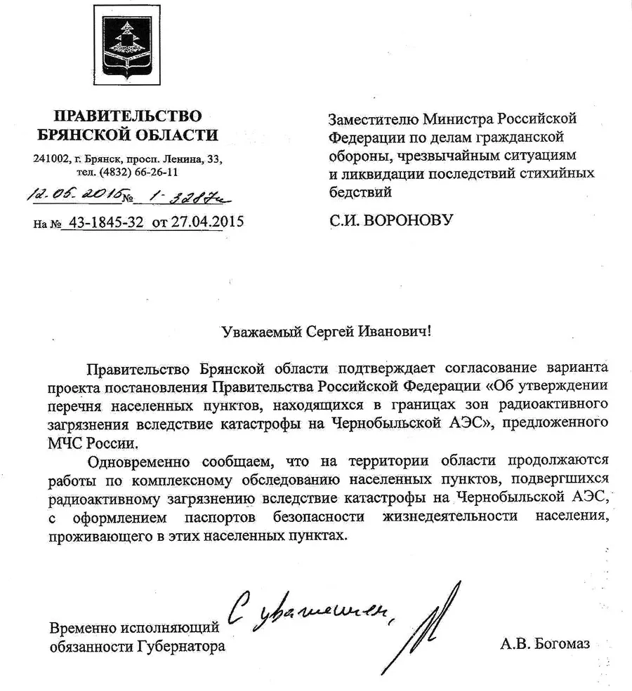 Начался это процесс еще с 2015 года, тогда правительство РФ приняло постановление о лишении трёхсот населённых пунктов Брянской области чернобыльского статуса «зоны отселения». Этот шаг был сделан с полного согласия Главы региона Александра Богомаза. Подробно об этом писало издание "Комсомолце Брянска", ныне подвергаемое гонениям по заявлению редактора.