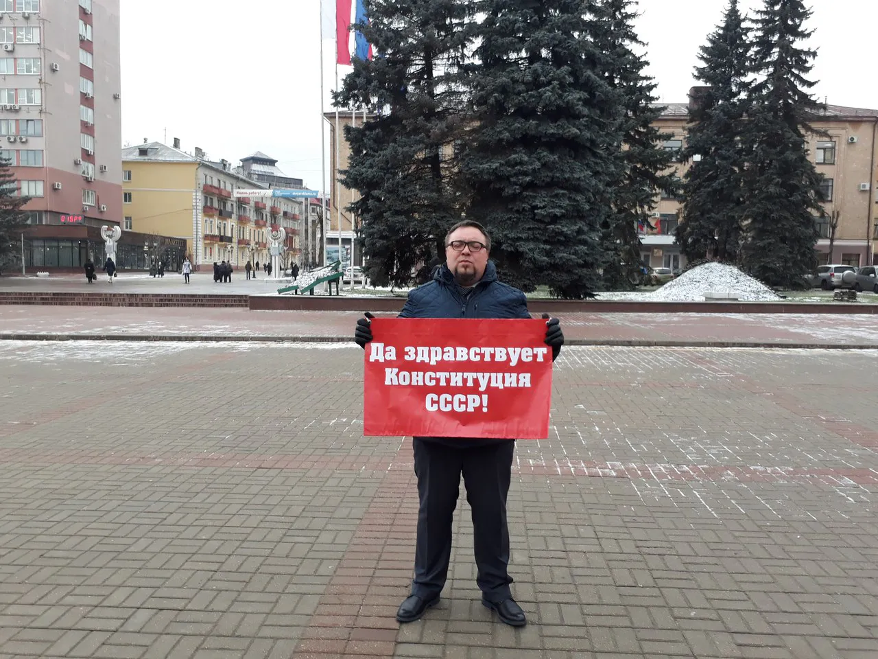 Сегодня на площади Ленина прошли одиночные пикеты в честь Конституции СССР. В пикете, который проводился с часу до трех часов дня, приняли участие брянские коммунисты.