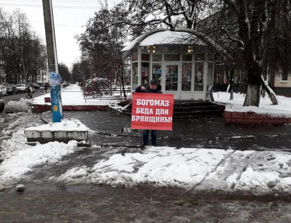 На плакате активиста был следующий лозунг: «Богомаз – беда для Брянщины». Отметим, что ранее с таким же лозунгом провел пикет коммунист Перт Громов.