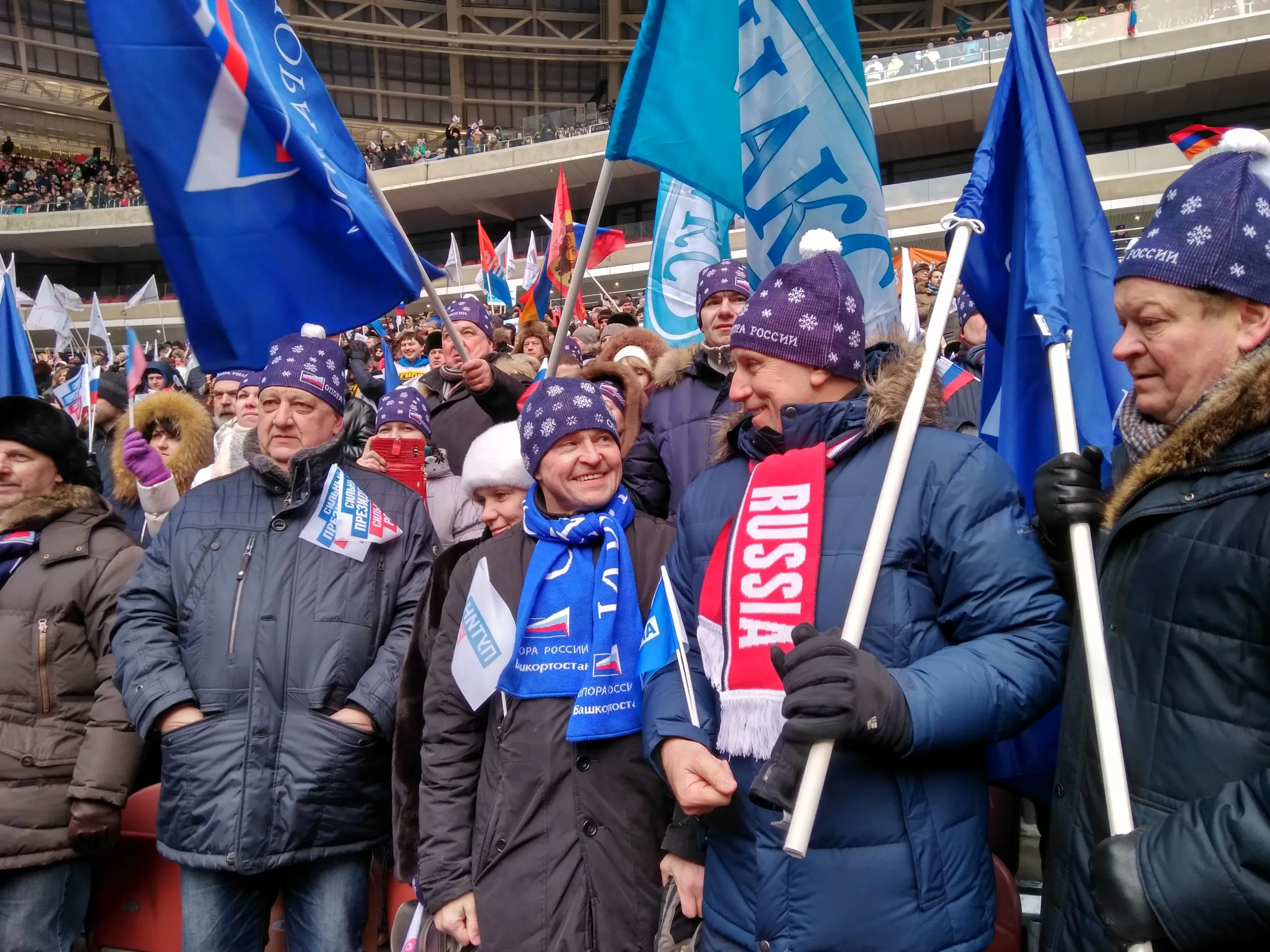 3 марта делегация региональных отделений ПАРТИИ "РОДИНА" и объединения предпринимателей «ОПОРА РОСИИ» приняла участие в митинге-концерте в поддержку Владимира Путина "За сильную Россию", который проходил в спорткомплексе «Лужники» в Москве.