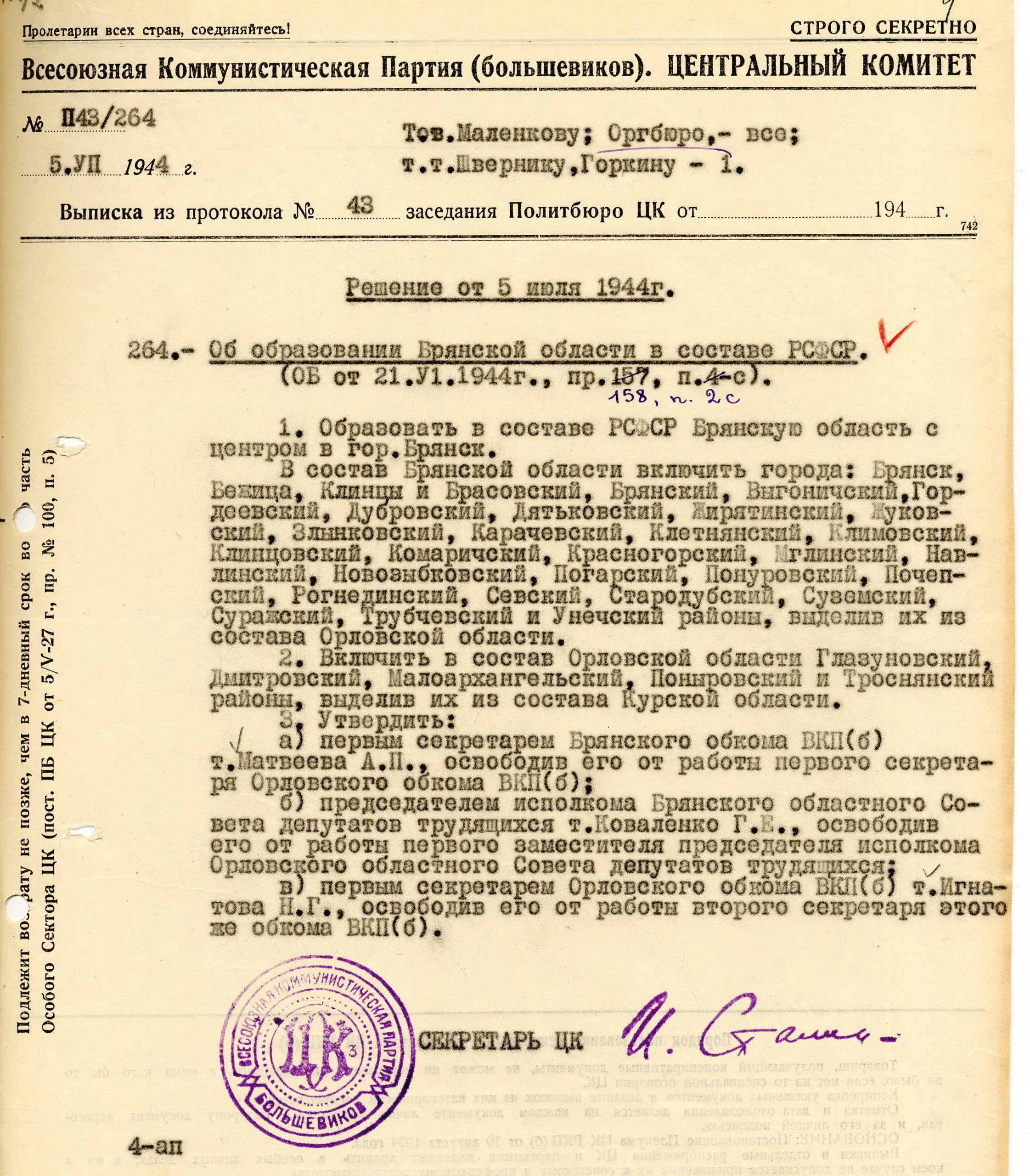 Но есть один маленький исторический нюанс, о котором забыли в областном Правительстве и в 2008 году и в 2018-м. Осенью 1943 года еще не существовало Брянской области как региона РСФСР. Это были отдельные районы Орловской области. Указ Президиума Верховного Совета СССР о создании Брянской области был подписан И.В. Сталиным лишь 5 июля 1944 года. Мелочь, скажете вы. Но на наградах не может быть мелочей, искаженных фактов и других неприятных ошибок. Ведь учреждение медали – это тоже история.