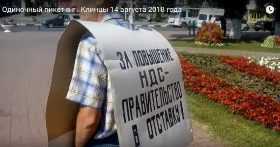 Надписи на плакатах были посвящены животрепещущим темам, взволновавшим всё российское общество – «Я против повышения пенсионного возраста» и «За повышения НДС - правительство в отставку».