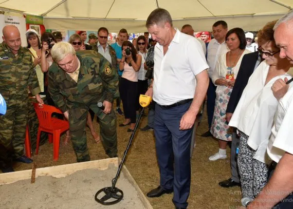 Главе региона улыбнулась удача. С помощью металлодетектора Александр Богомаз обнаружил, на специально подготовленном стенде, макеты боеприпасов периода Великой Отечественной войны.