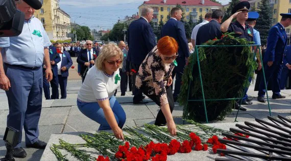 По традиции праздничная программа началась с возложения цветов к Вечному огню на площади Партизан