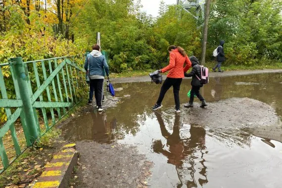 Жители Брянска жалуются на затопленную дорогу к школе №58 в Володарском районе. Об этом сообщили в группе Вконтакте «Типичный Брянск.