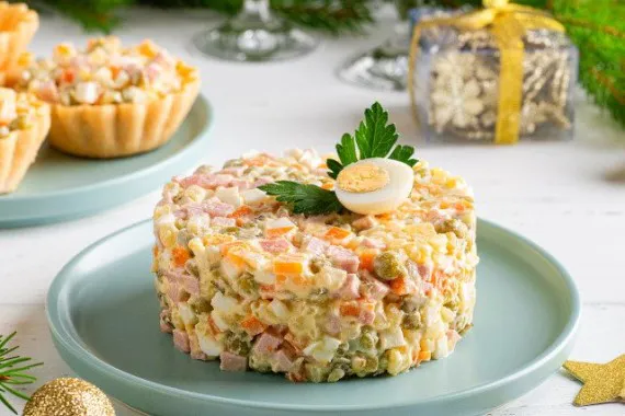 Не все знают, что старинный рецепт «Оливье» совсем не похож на современный. Изначально в состав блюда входили куда более экзотичные ингредиенты: мясо рябчика, икра паюсная, трюфели, оливки, раковые шейки, перепелиные яйца, листья салата, ланспик – густой желеобразный бульон. Из овощей добавлялся вареный картофель и свежие огурцы. Все это изобилие приправляли соусом «Провансаль». Поэтому может показаться, что от рецепта конца 19 века в современном «Оливье» осталось одно называние. Сегодня вариаций его приготовления очень много, однако привычный для нас «Оливье» состоит из следующих продуктов, которые есть на кухне у каждой хозяйки: колбаса вареная, картофель, морковь, маринованные или соленые огурцы, зеленый горошек, яйца и майонез. Это не просто новогодняя еда, а дань традициям.