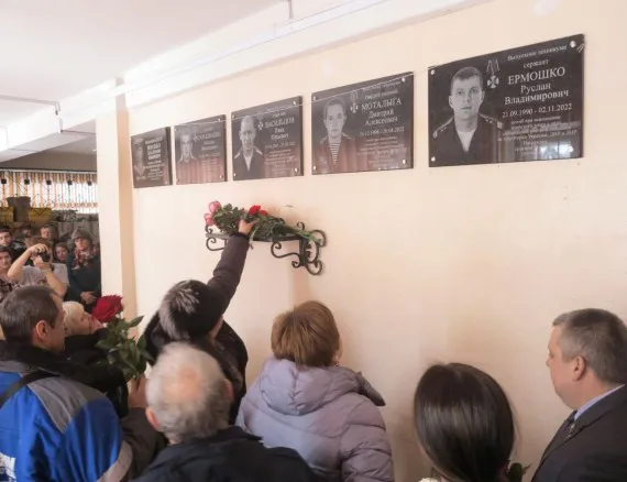 Сегодня в Новозыбковском филиале Брянского техникума энергомашиностроения имени Героя Советского Союза Афанасьева открыли мемориальные доски в память о выпускниках, погибших при исполнении воинского долга в ходе СВО, Старшине Ивану Васильцову, Гвардии рядовому Дмитрию Моталыга, Сержанту Руслану Ермошко, Рядовому Максиму Сараквашину
