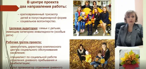 Заместитель директора ГБУ Брянской области "Комплексный центр социального обслуживания населения города Сельцо" Непша Светлана Евгеньевна рассказала о проекте «Социальная няня». О целях и задачах в рамках реализации проекта, используемых методы работы, проводимых комплексным центром мероприятиях при работе с детьми с ОВЗ и других аспектах проекта в нашем видеосюжете: