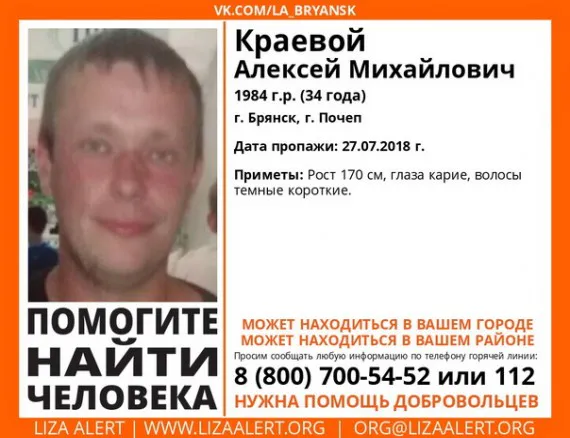 На Брянщине с июля ищут 34-летнего Алексея Краевого