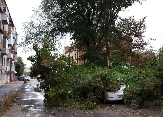 В районе 51-й школы дерево рухнуло на проезжую часть, во дворе дома № 8 по переулку Уральскому задело балкон.