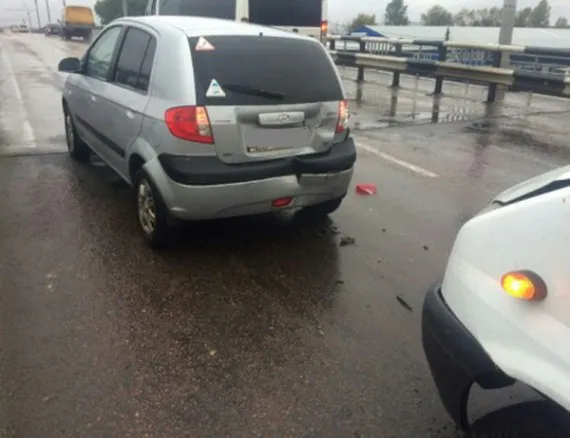 В минувший понедельник около шести часов вечера маршрутное такси №50 при перестроении в левый ряд врезалось в автомобиль Hyundai Getz.
