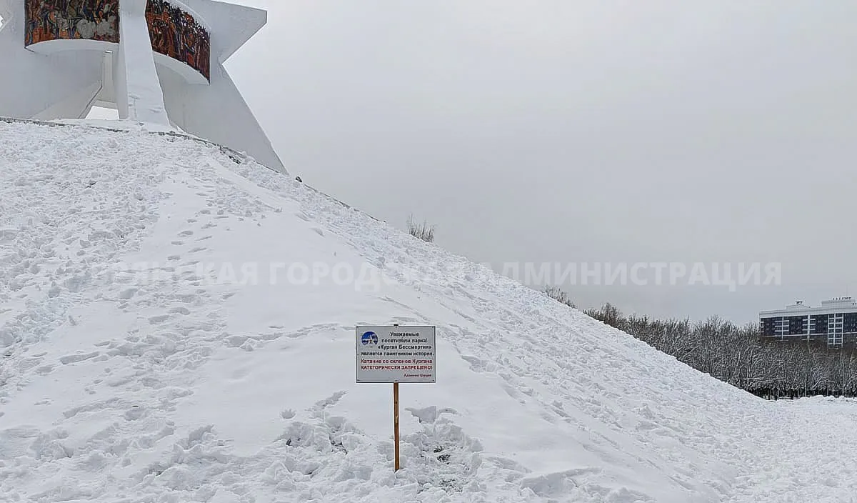 Катание со склонов Кургана Бессмертия категорически запрещено.