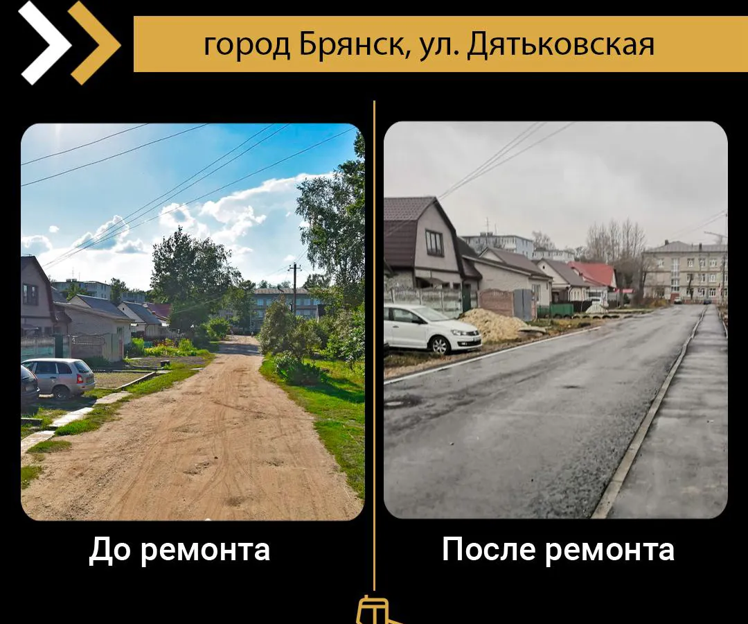 Управление автомобильных дорог Брянской области показало, как выглядела дорога по ул. Дятьковской до и после ремонта