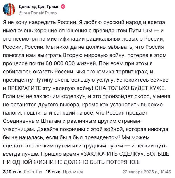 Недавно избранный Президент США решил перед возможными кулуарными переговорами начать угрожать нашей стране санкциями.